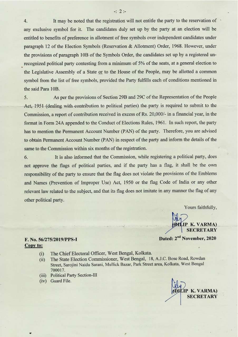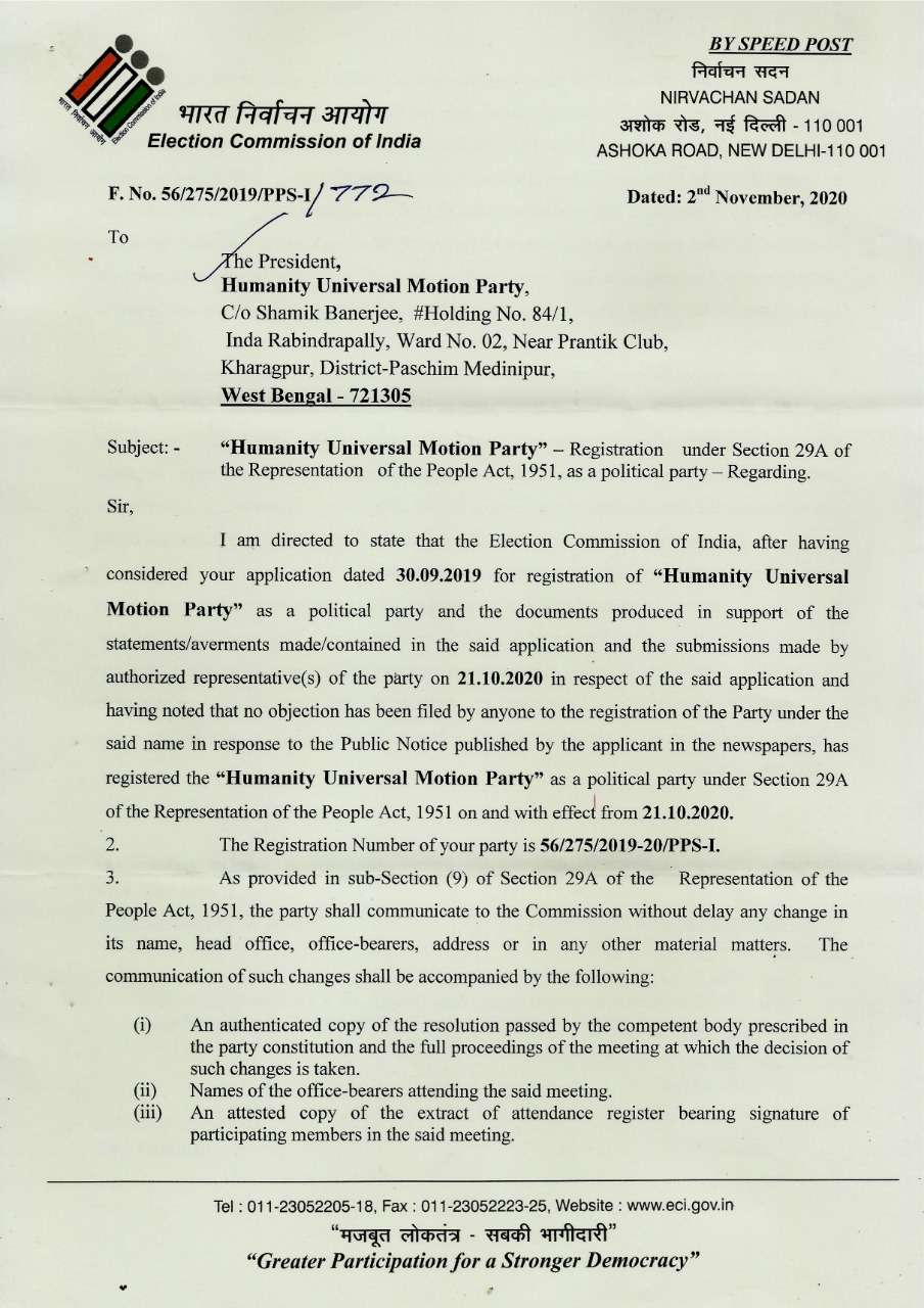 Registered with Election Commission of India (E.C.I)